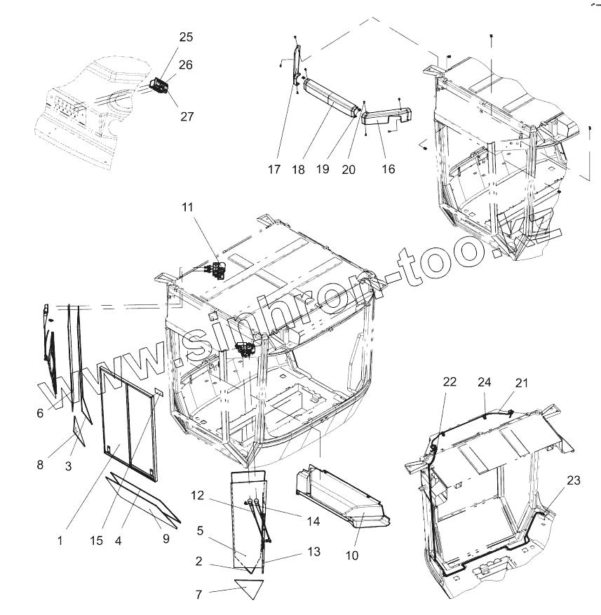 Каталог запасных частей к технике: DYNAPAC CC4000 VI. Screens, wipers and switches, cab right side
