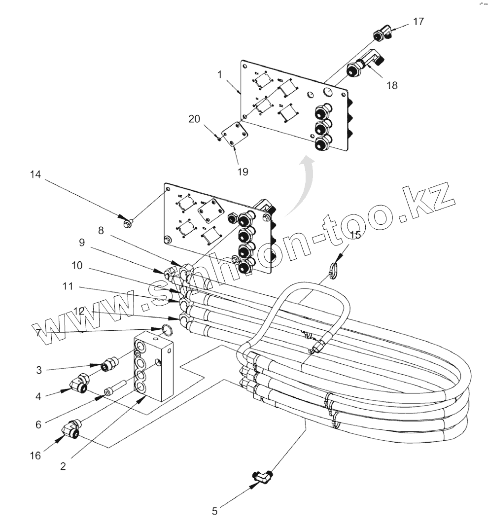 Каталог запасных частей к технике: DYNAPAC CC4200C VI. Hose bracket, cross sliding