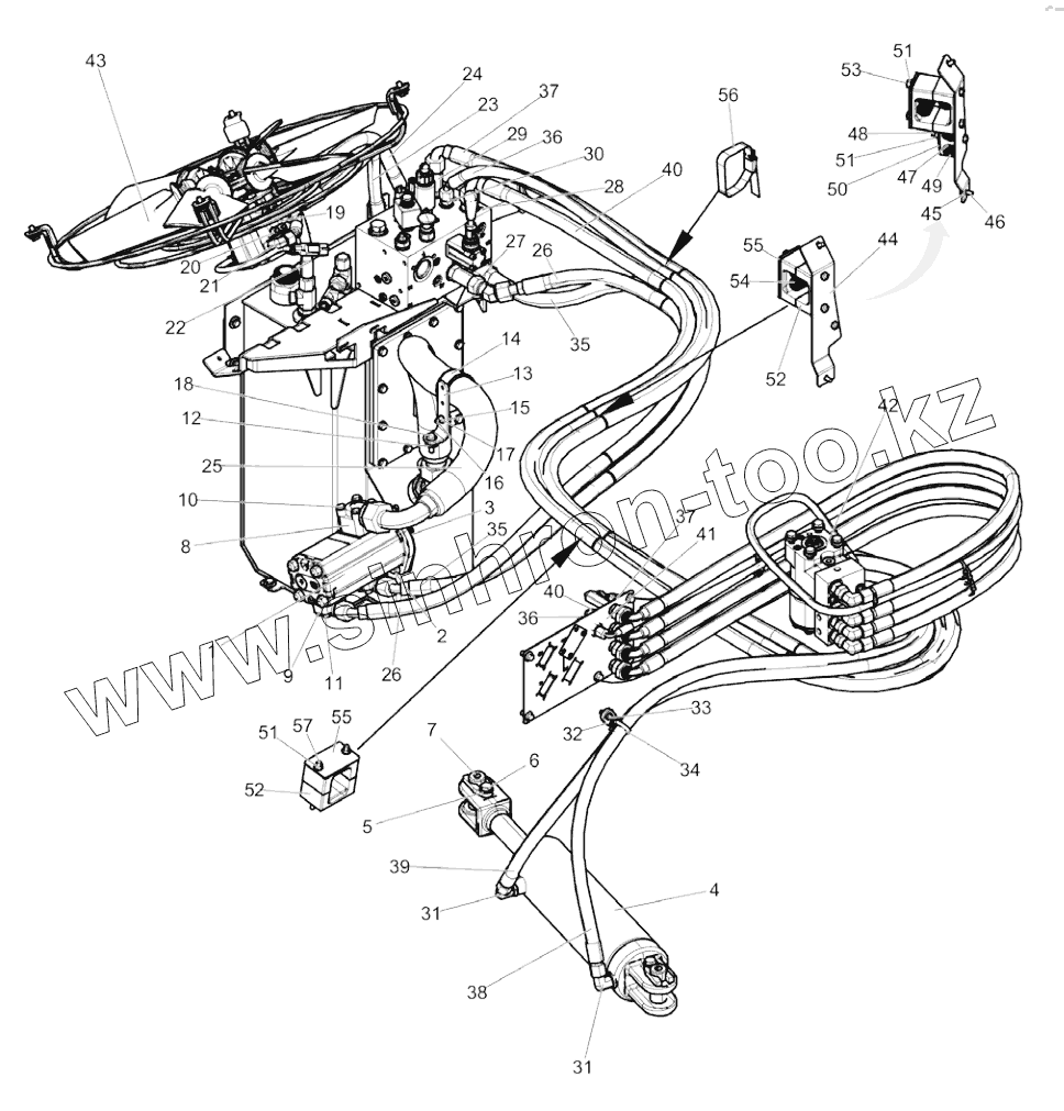 Каталог запасных частей к технике: DYNAPAC CC4200C VI. Hydraulic system, fan & steering