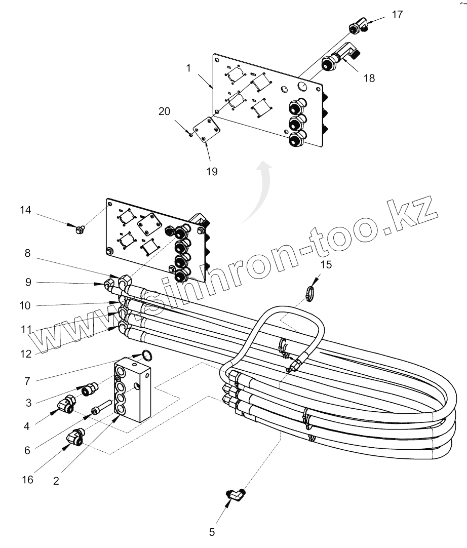 Каталог запасных частей к технике: DYNAPAC CC6200 VI. Hose bracket, cross sliding