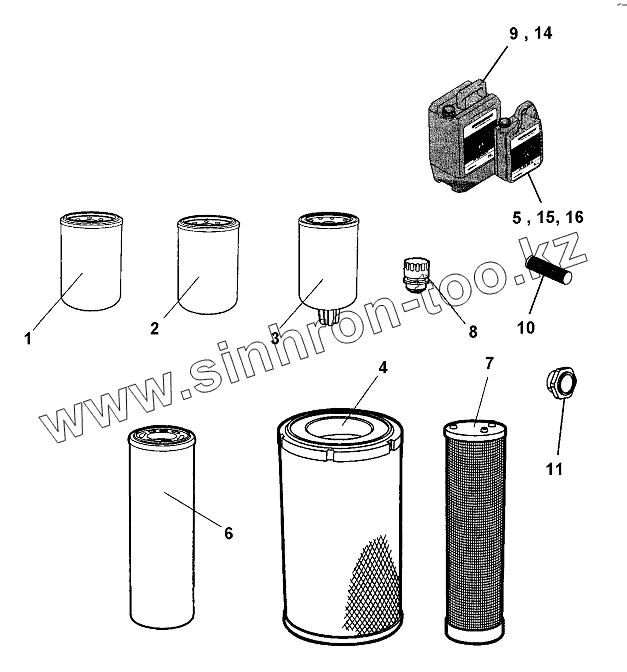 Каталог запасных частей к технике: DYNAPAC Dynapac CA1500. 4812159462 Service kit, 50h Plus