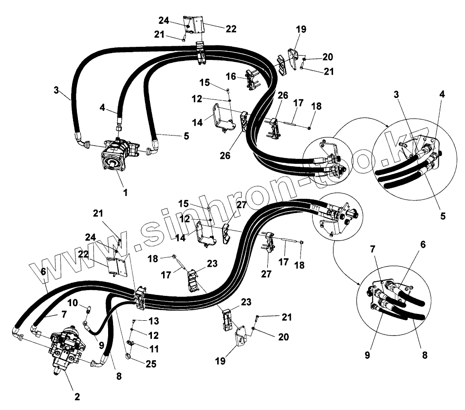 Каталог запасных частей к технике: DYNAPAC Dynapac CA2500. Hydraulic system, drum Anti-spin system
