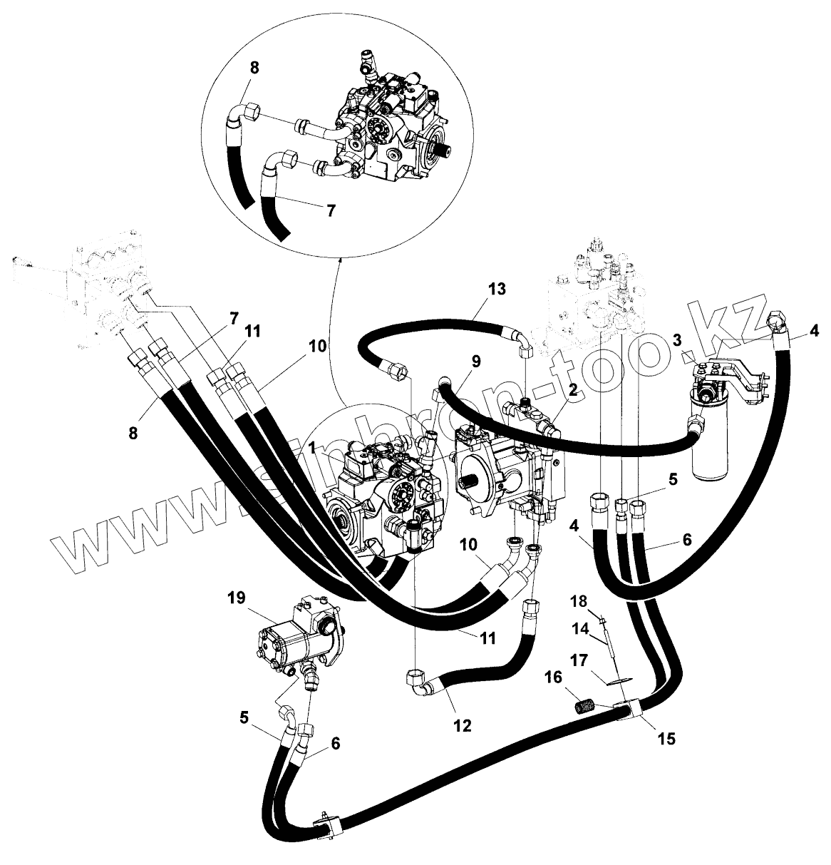 Каталог запасных частей к технике: DYNAPAC Dynapac CA2500. Hydraulic system, engine room