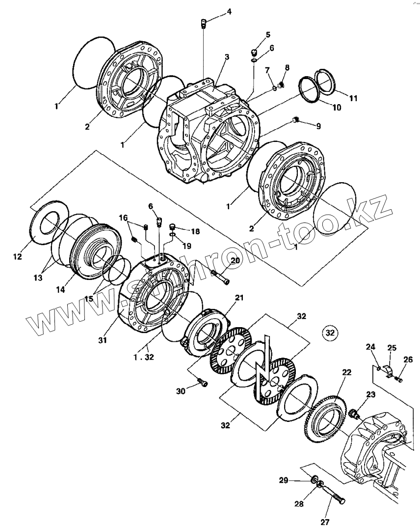 Каталог запасных частей к технике: DYNAPAC Dynapac CA302D. Differential housing and brakes From 68X20841