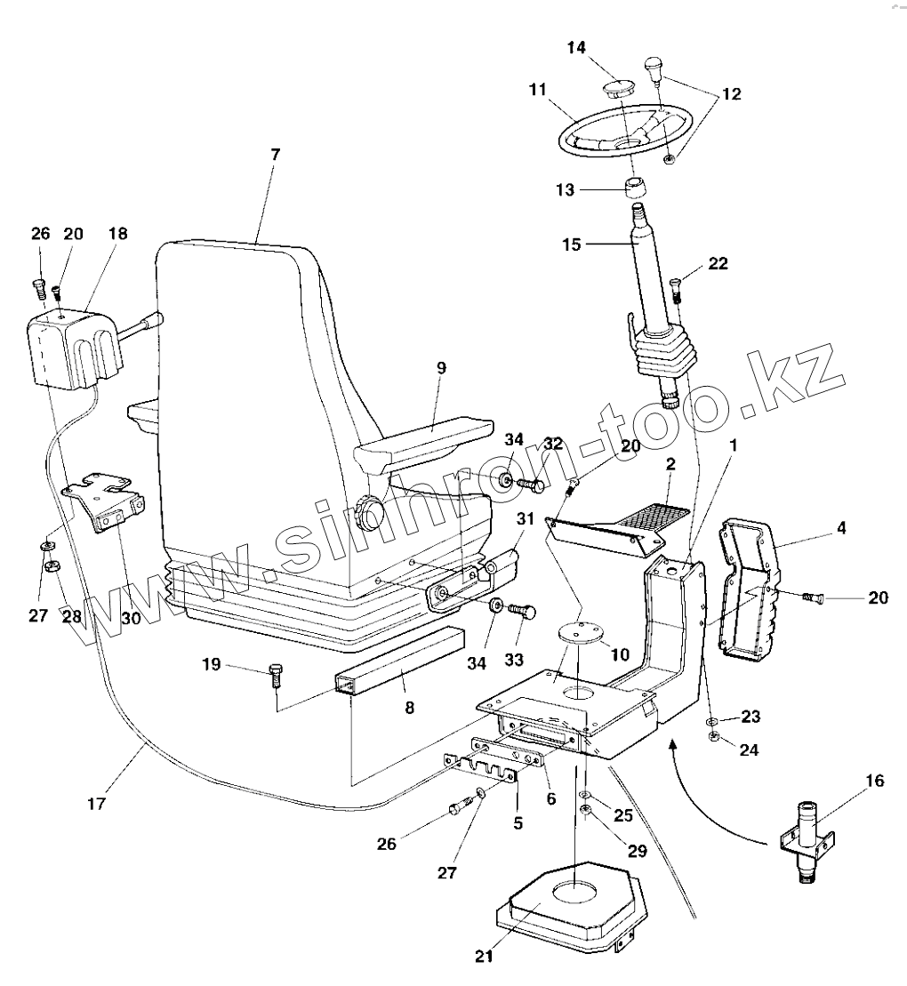 Каталог запасных частей к технике: DYNAPAC Dynapac CA302D. Drivers seat Turn-over in cab 17037