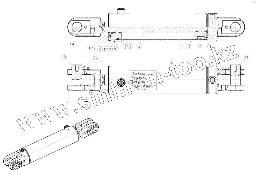 Каталог запасных частей к технике: DYNAPAC Dynapac CA5000D. 4812121947 Hydraulic cylinder