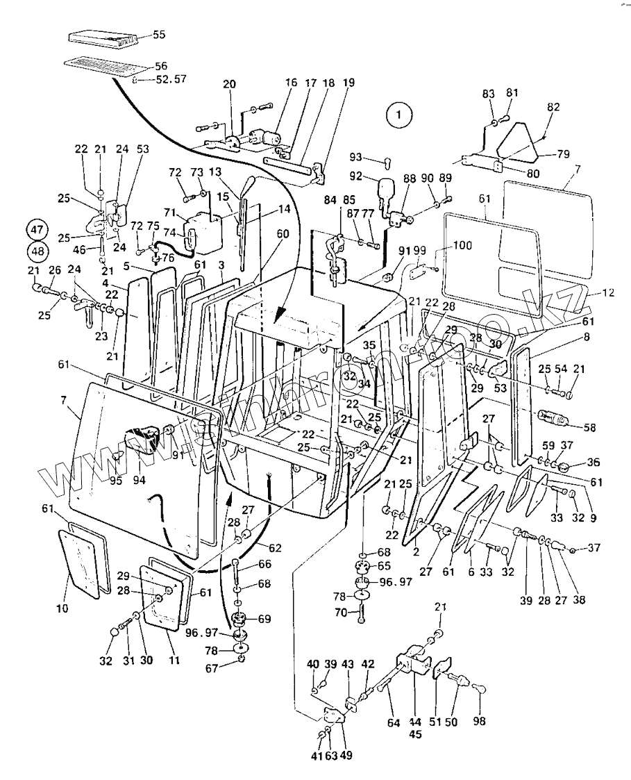 Каталог запасных частей к технике: DYNAPAC Dynapac CC142. Cab, exterior Up to 602X3164