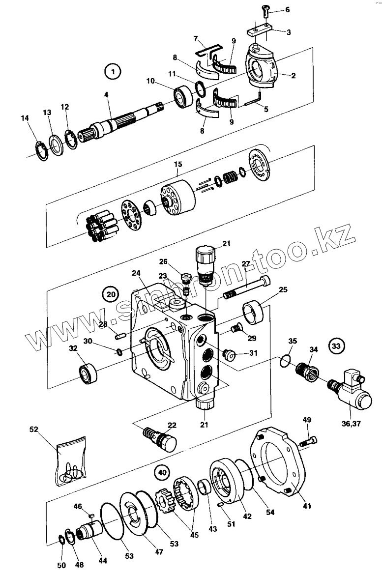 Каталог запасных частей к технике: DYNAPAC Dynapac CC142. Rotating group, valves, charge pump