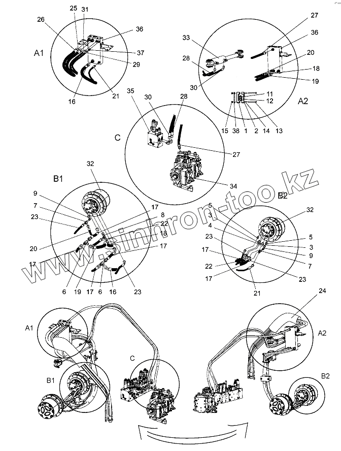 Каталог запасных частей к технике: DYNAPAC Dynapac CC2200C. Hydraulic hoses, rear ending