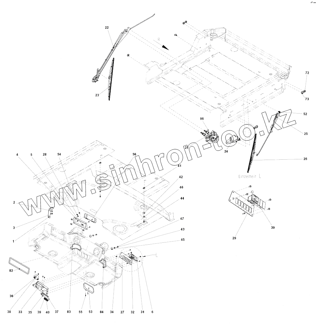 Каталог запасных частей к технике: DYNAPAC Dynapac CC2200C. Wiper side left and front ceiling