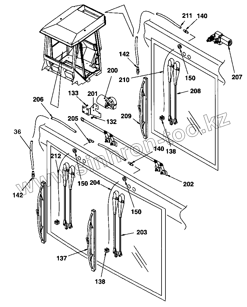 Каталог запасных частей к технике: DYNAPAC Dynapac CC322. Cab, wipers, front and rear