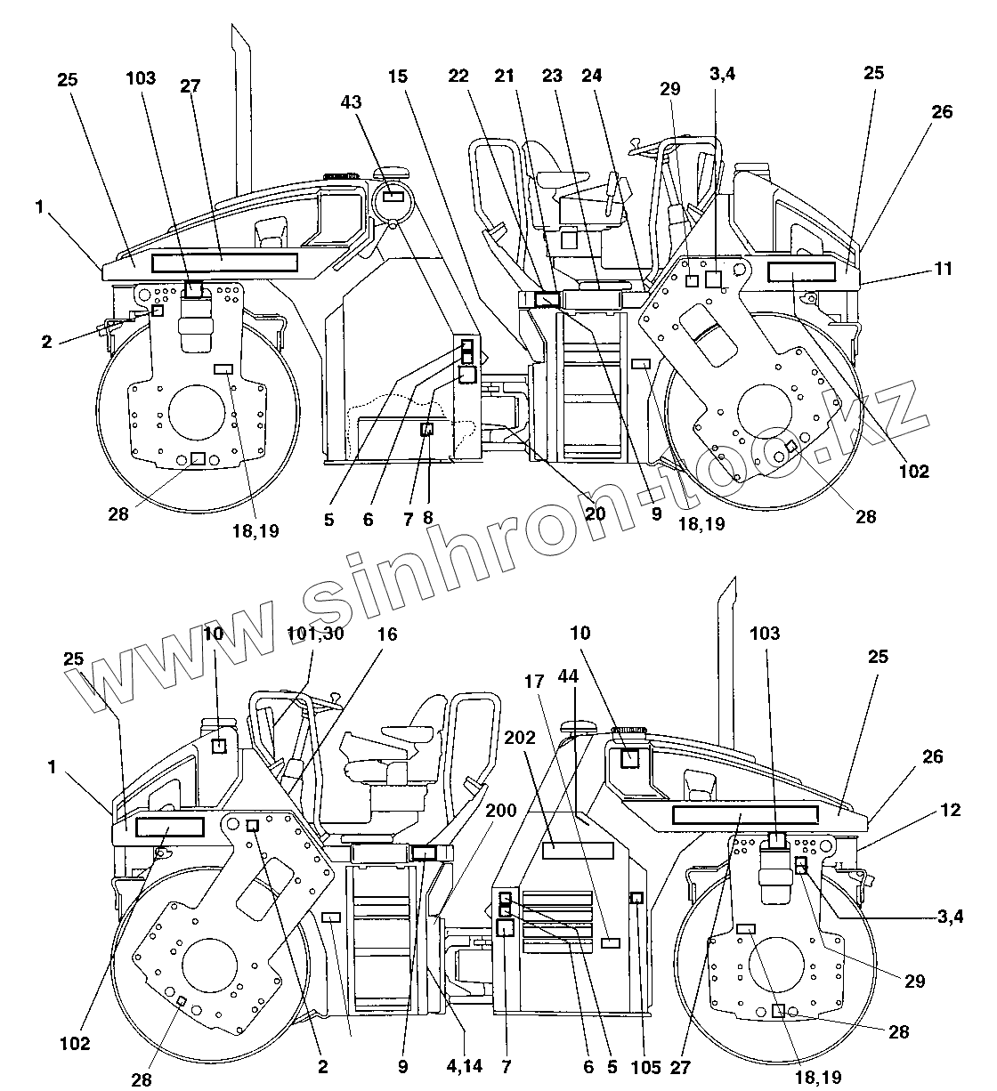 Каталог запасных частей к технике: DYNAPAC Dynapac CC322. Plates and decals
