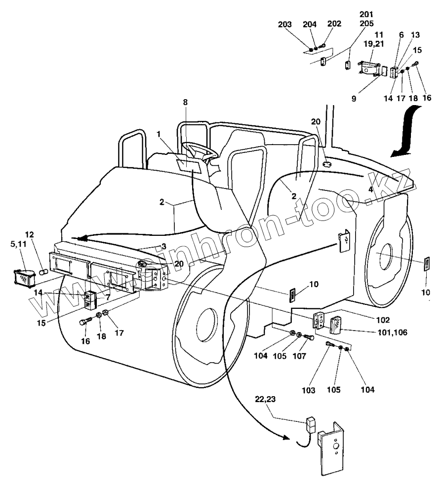 Каталог запасных частей к технике: DYNAPAC Dynapac CC422. Driving lights Direction & licenseplate light