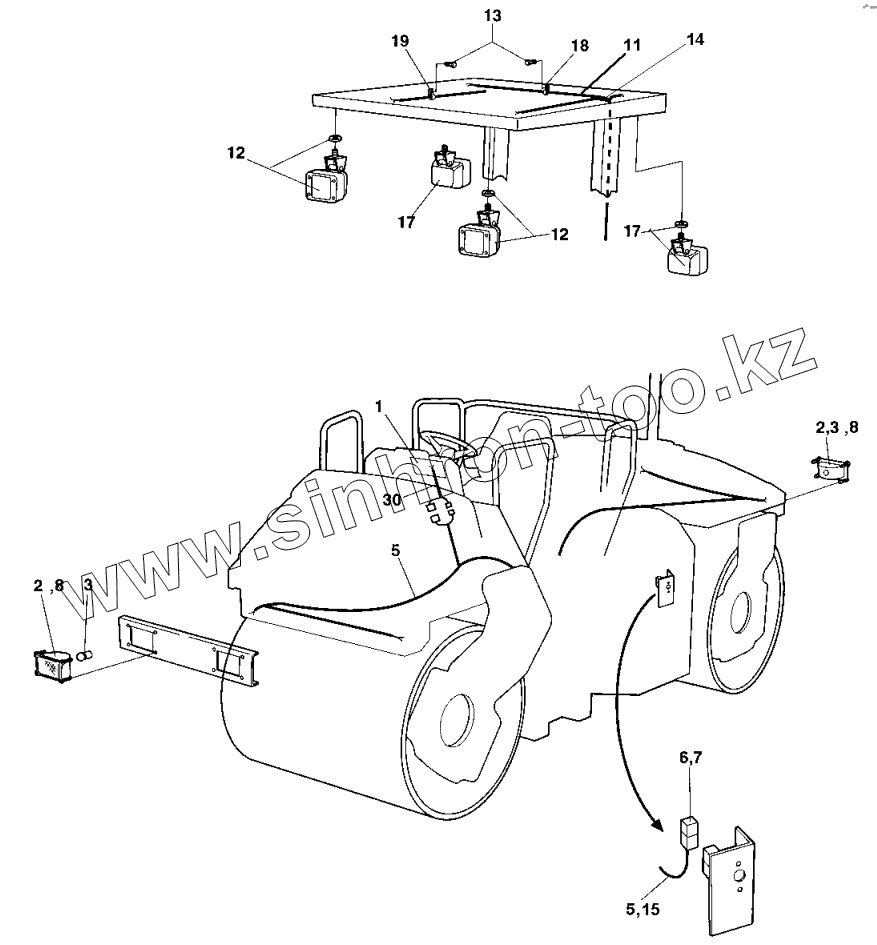 Каталог запасных частей к технике: DYNAPAC Dynapac CC422. Working lights with/without Rops