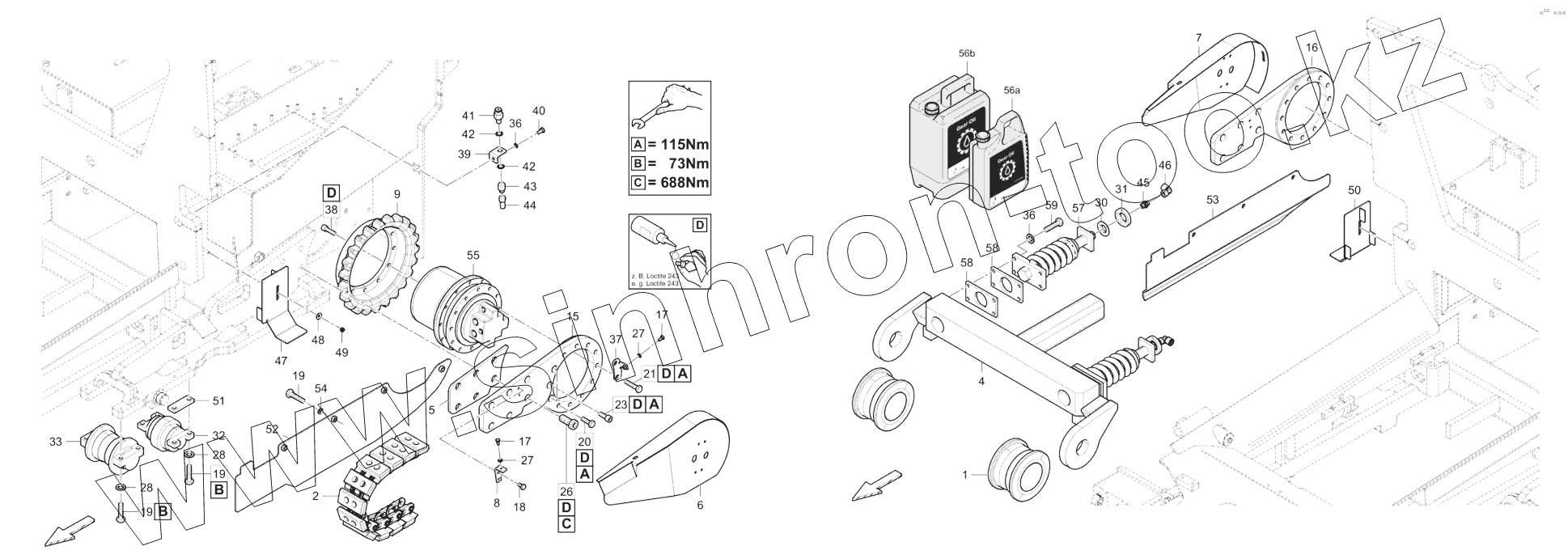 Каталог запасных частей к технике: DYNAPAC Dynapac F1200C/CS. 4812045327 Gr.02 Track group