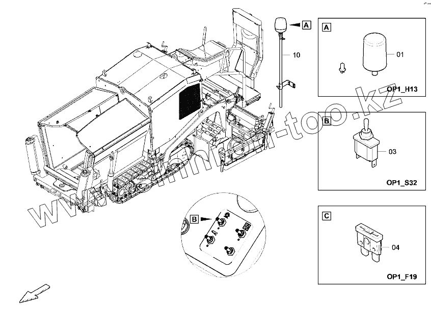 Каталог запасных частей к технике: DYNAPAC Dynapac F1200C/CS. 4812046474 Electric rotaflare light