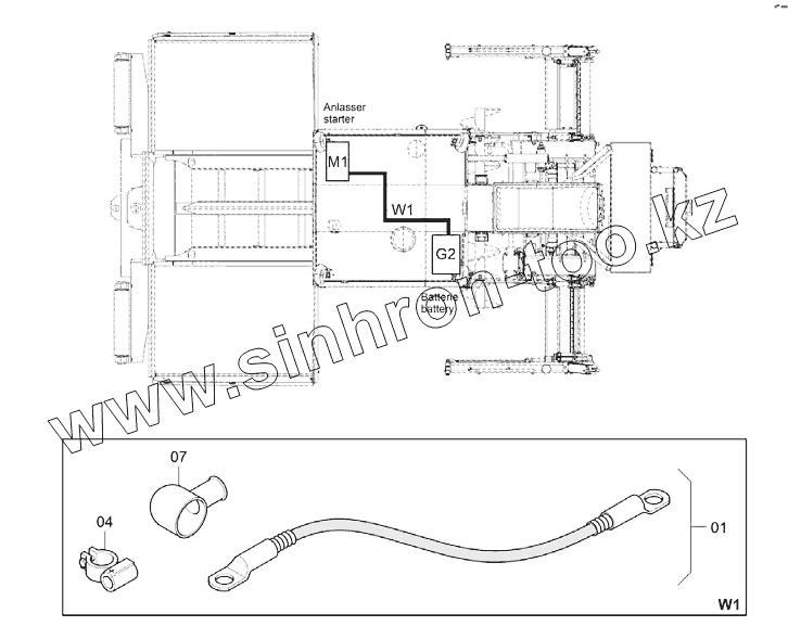 Каталог запасных частей к технике: DYNAPAC Dynapac F1200C/CS. 4812047519 Cable W1