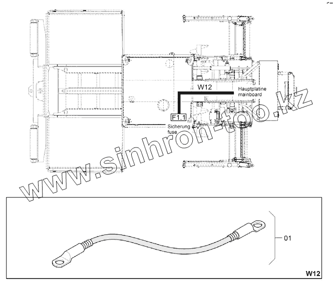 Каталог запасных частей к технике: DYNAPAC Dynapac F1200C/CS. 4812047530 Cable W12