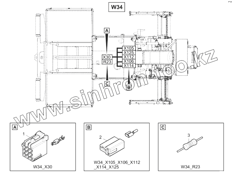 Каталог запасных частей к технике: DYNAPAC Dynapac F1200C/CS. 4812233536 Cable W34