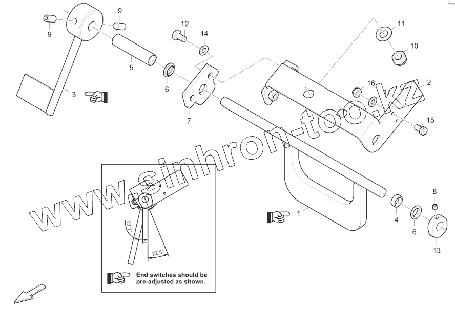 Каталог запасных частей к технике: DYNAPAC Dynapac F1200C/CS. Conceyor limit switch, l.h.