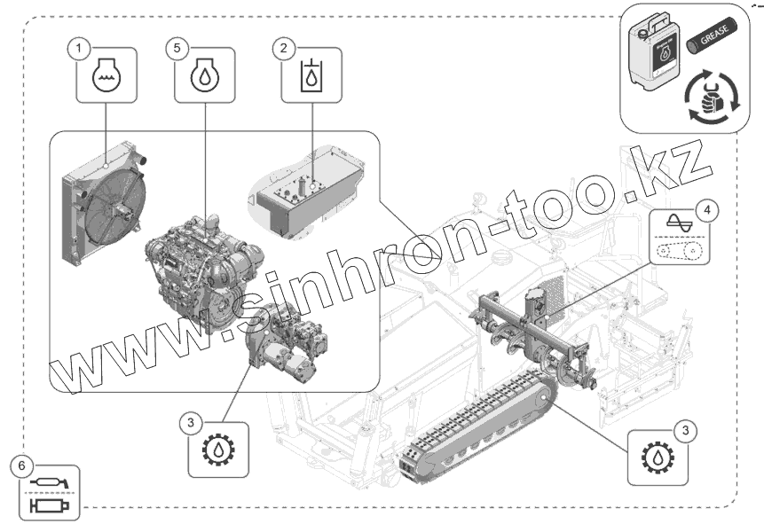 Каталог запасных частей к технике: DYNAPAC Dynapac F1200C/CS. L180000010 Lubricants and operating substances