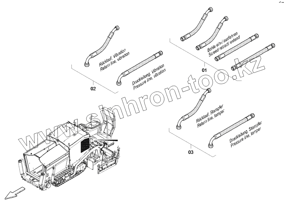 Каталог запасных частей к технике: DYNAPAC Dynapac F1200CS/CS. 4812007160 Hose package