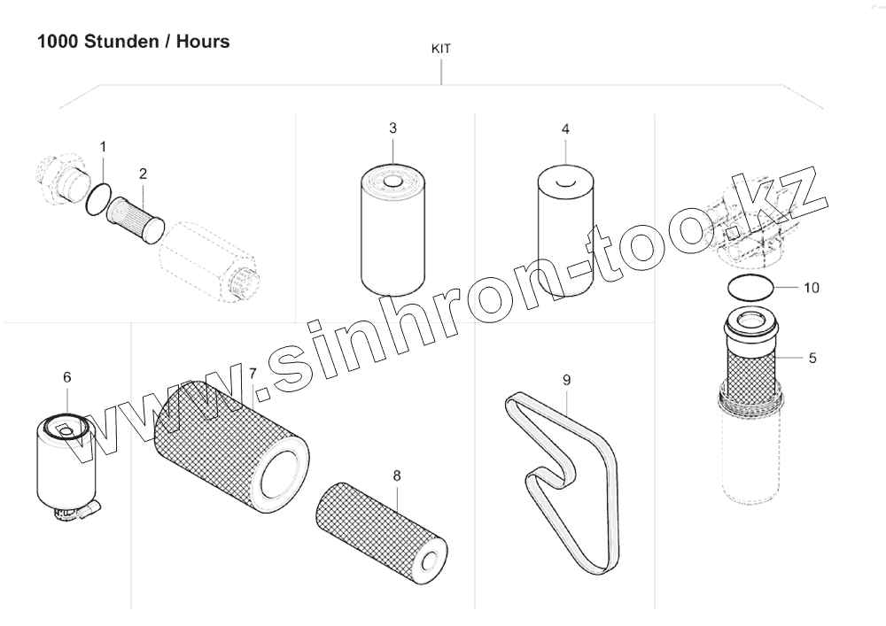 Каталог запасных частей к технике: DYNAPAC Dynapac F1200CS/CS. 4812009686 Service kit 1000 h