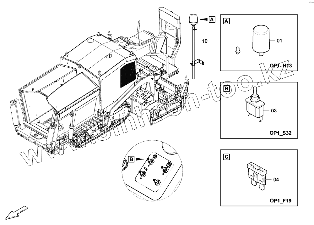 Каталог запасных частей к технике: DYNAPAC Dynapac F1200CS/CS. 4812046474 Electric rotaflare light