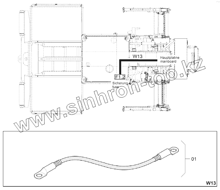 Каталог запасных частей к технике: DYNAPAC Dynapac F1200CS/CS. 4812047531 Cable W13