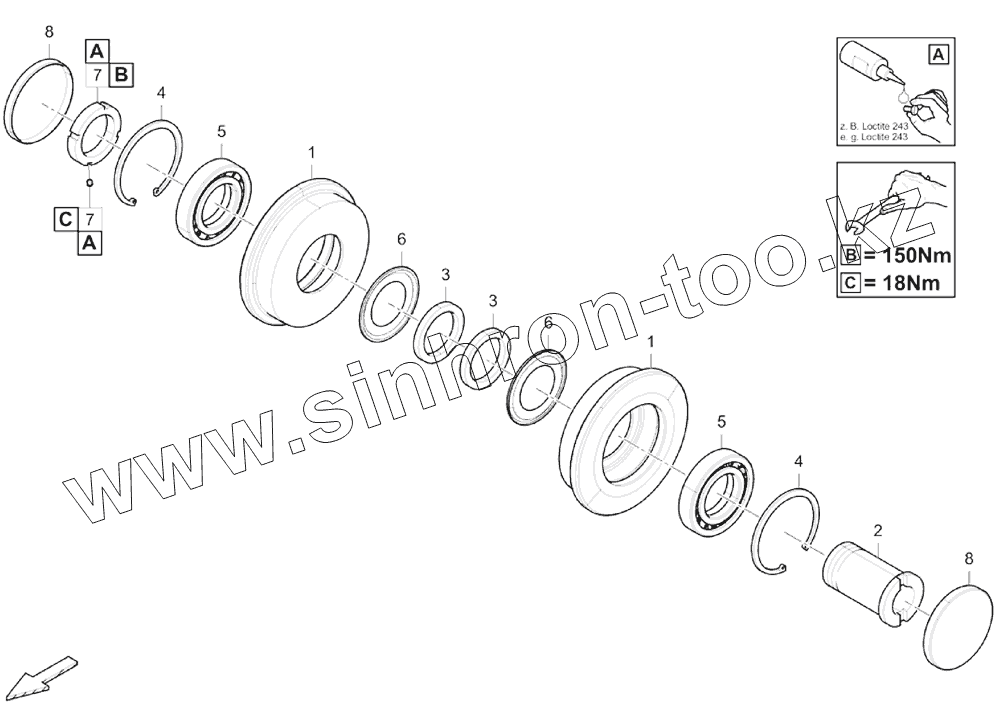 Каталог запасных частей к технике: DYNAPAC Dynapac F1200CS/CS. D450163400 Reversing roller