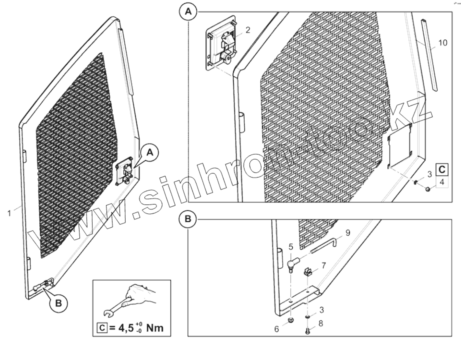 Каталог запасных частей к технике: DYNAPAC Dynapac F1800C. 4812235409 Door plate, r.h.