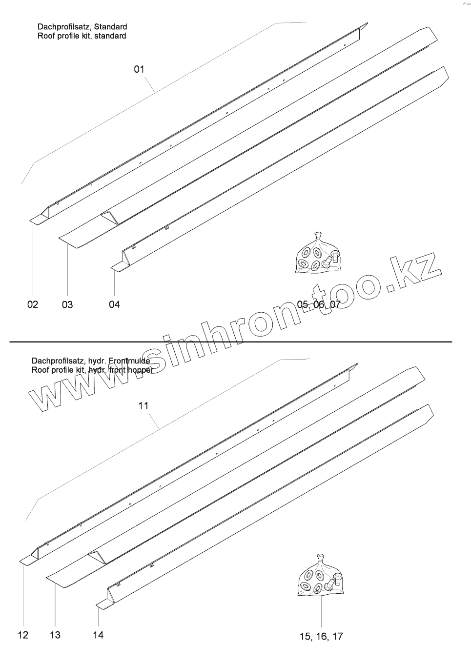 Каталог запасных частей к технике: DYNAPAC Dynapac F181C. Wear part kit roof profile