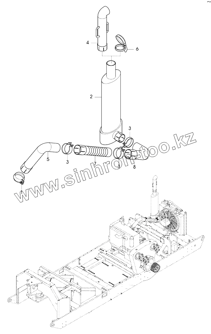 Каталог запасных частей к технике: DYNAPAC Dynapac PL2000LS. 504-06130 Eхhaust system