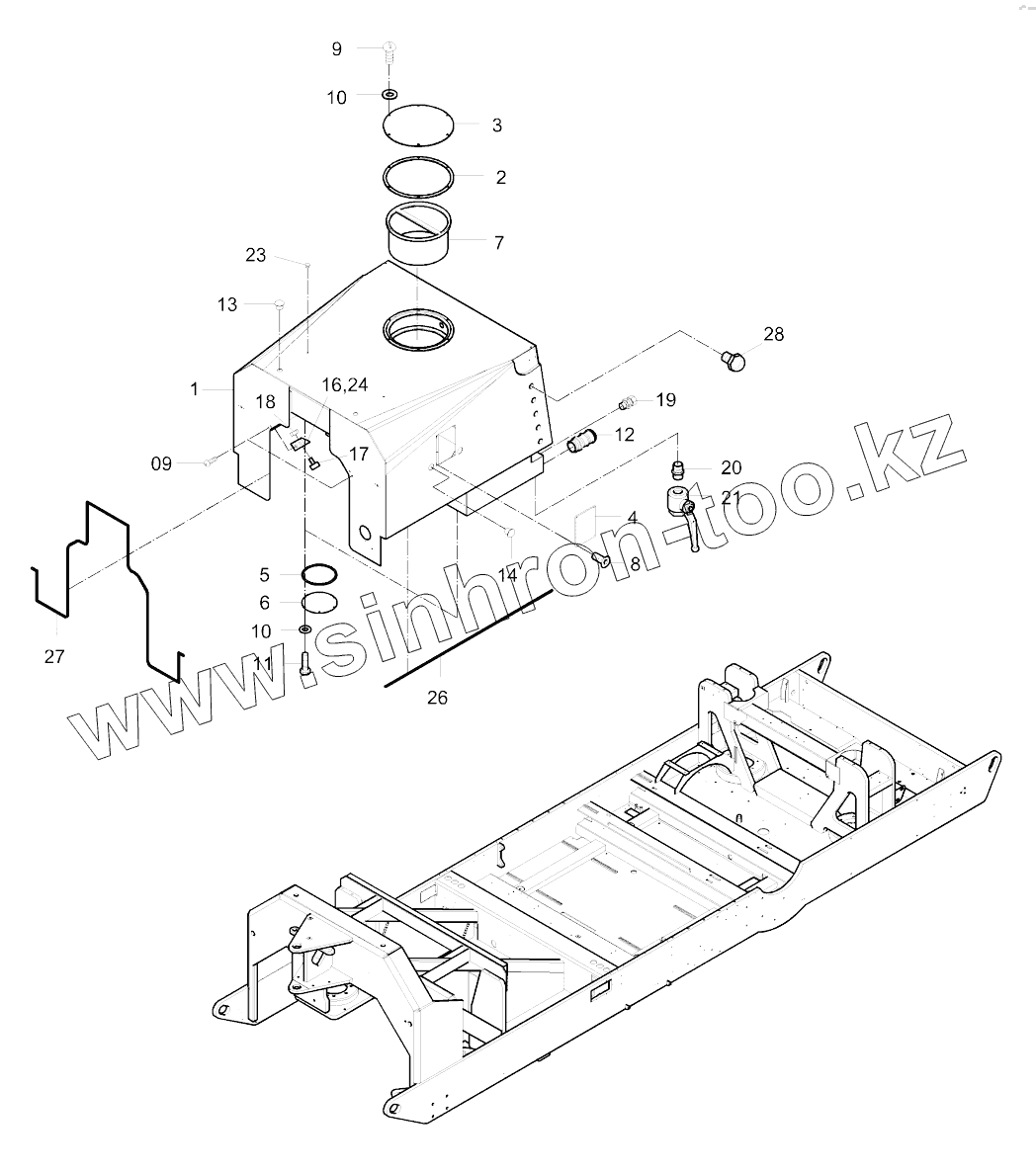 Каталог запасных частей к технике: DYNAPAC Dynapac PL2000LS. 504-09150 Water tank
