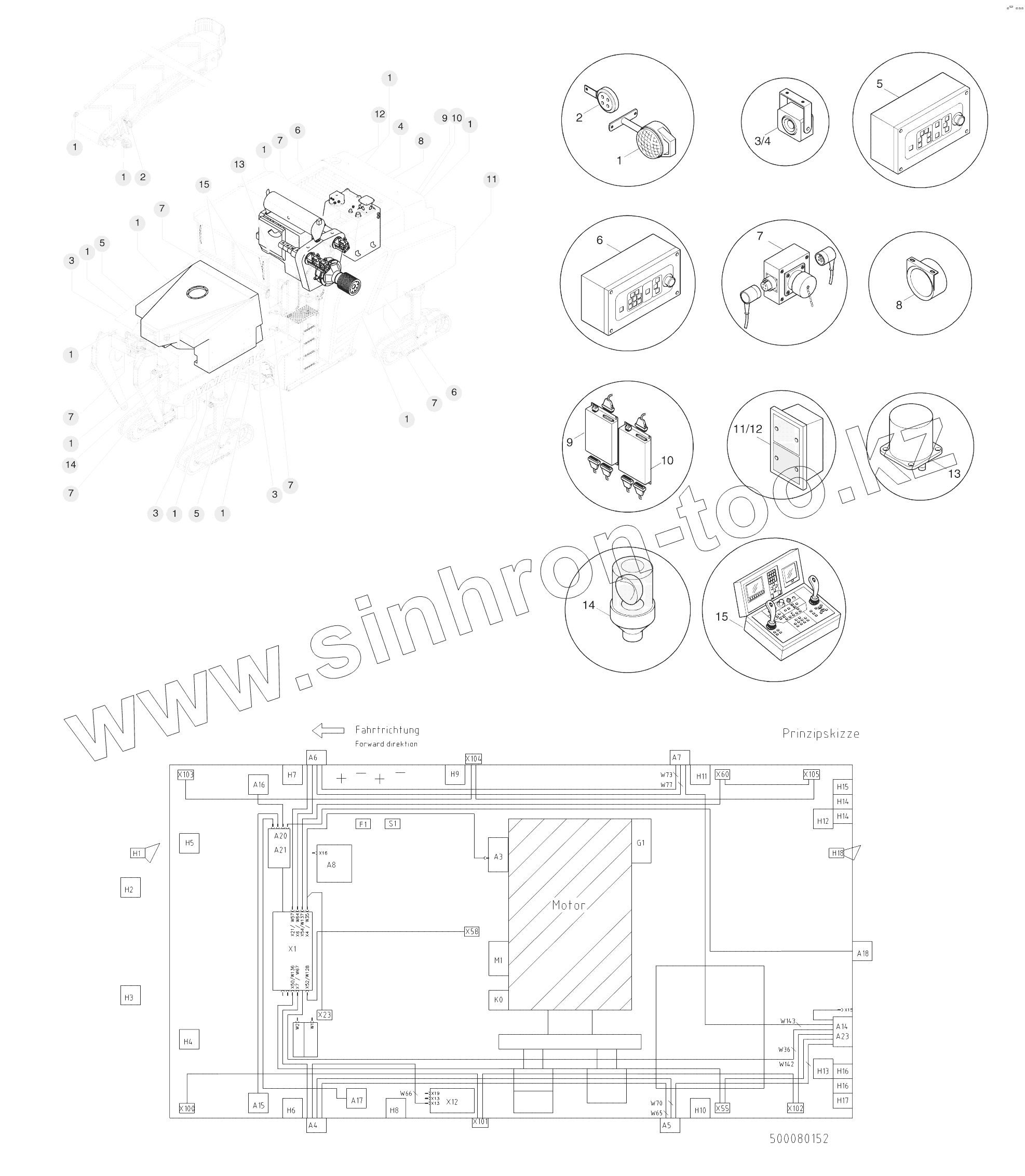| 15 | 500-08200 500-08210 | Operator panel, right Operator panel, left |