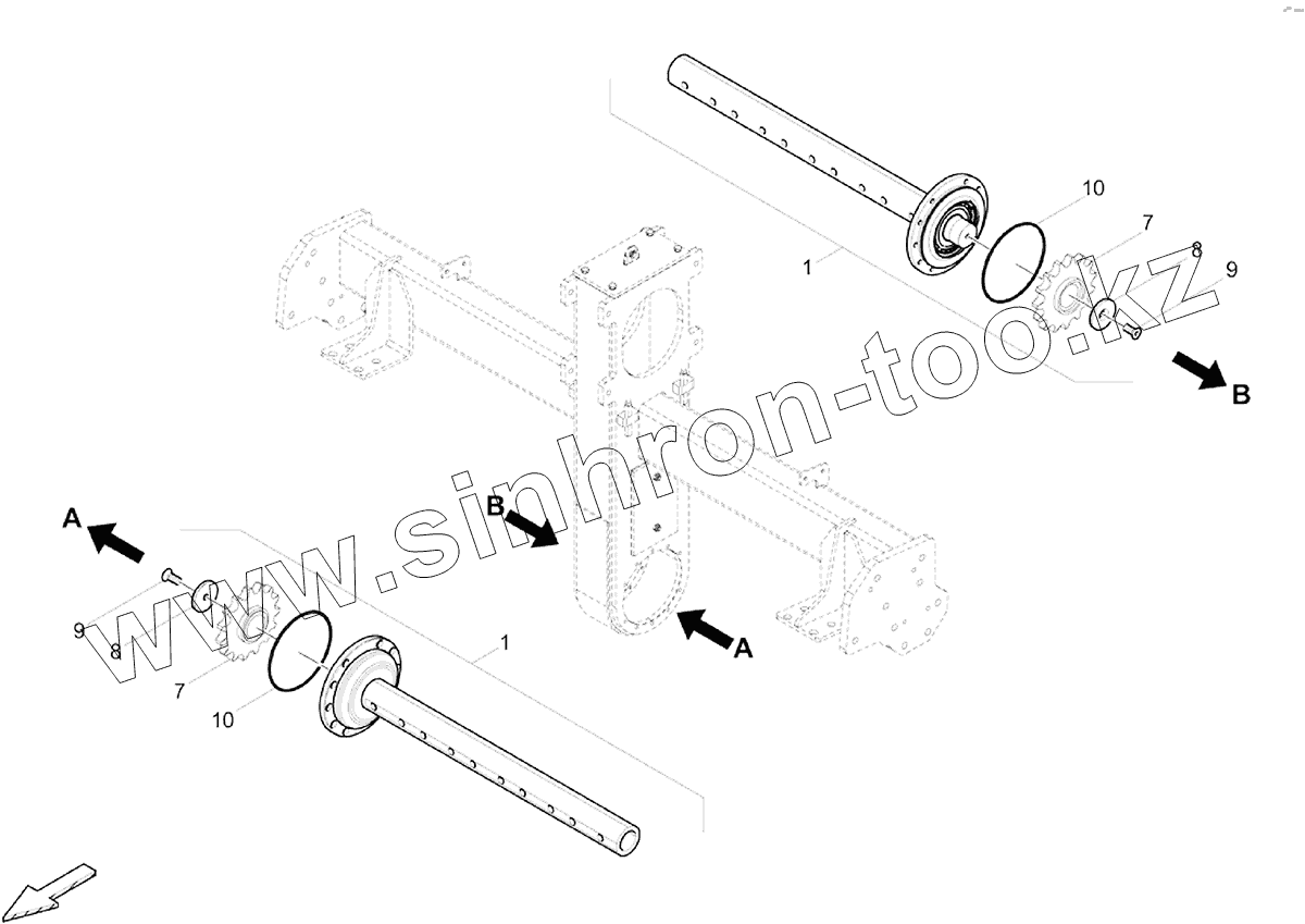 4720000139 Auger shaft extension assy. 960 mm r.h./rts.