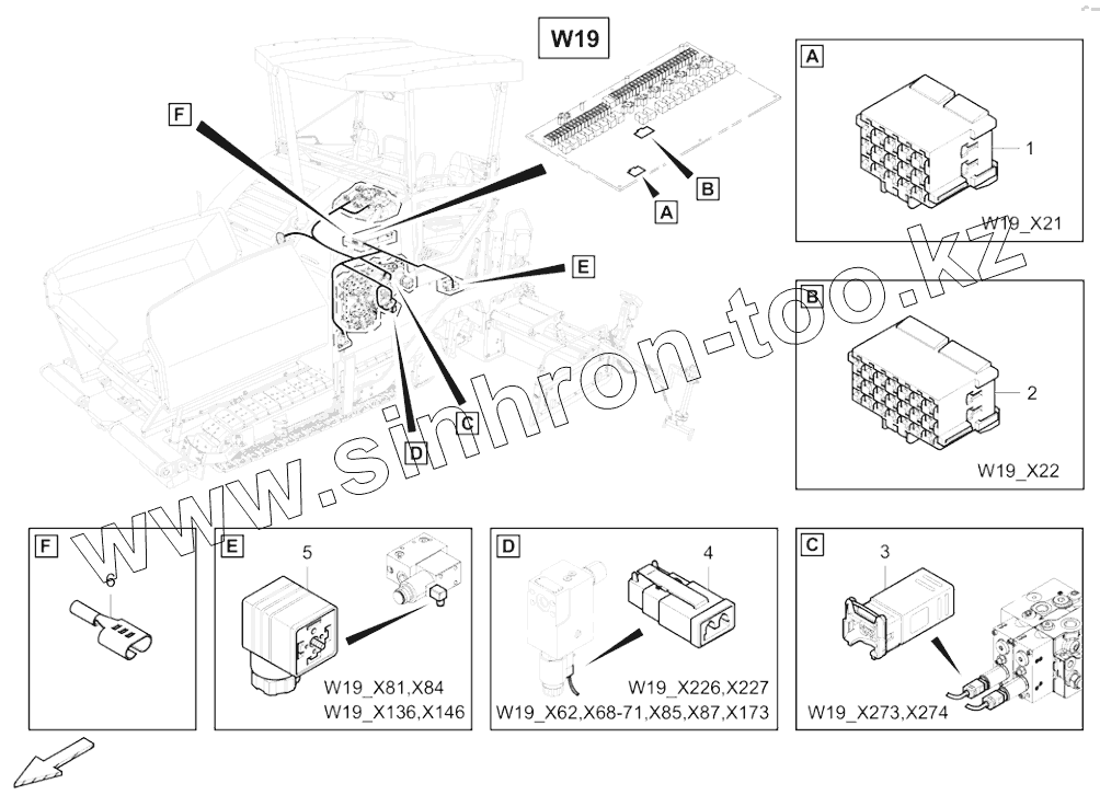 Каталог запасных частей к технике: DYNAPAC F2500C. 4812009075 Cable harness W19