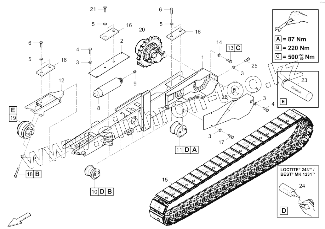 Каталог запасных частей к технике: DYNAPAC F2500C. 4812043007A Track group, short, l.h.
