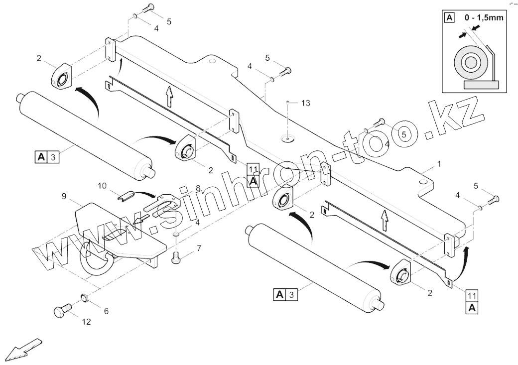 Каталог запасных частей к технике: DYNAPAC F2500C. 4812044911A Gr.03 Push roller, hydraulic crosshead