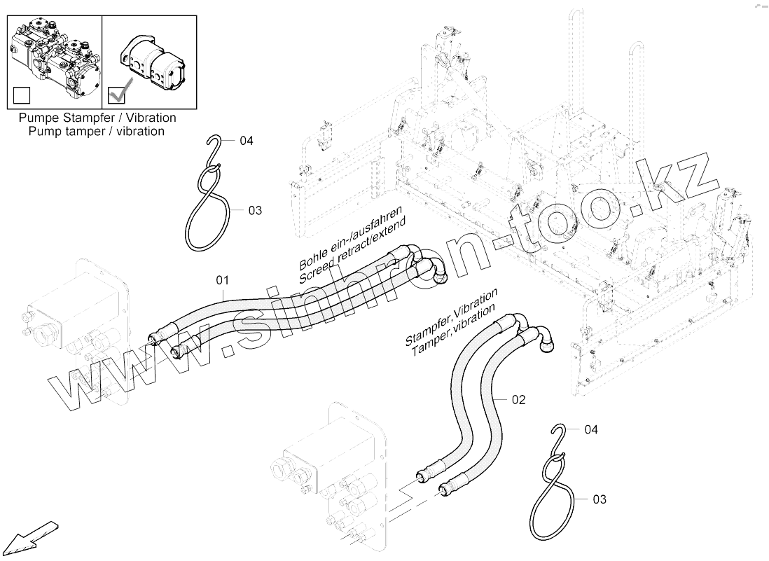 Каталог запасных частей к технике: DYNAPAC SD2550CS. 4812007545 Hose package screed R300 Konstant / constant