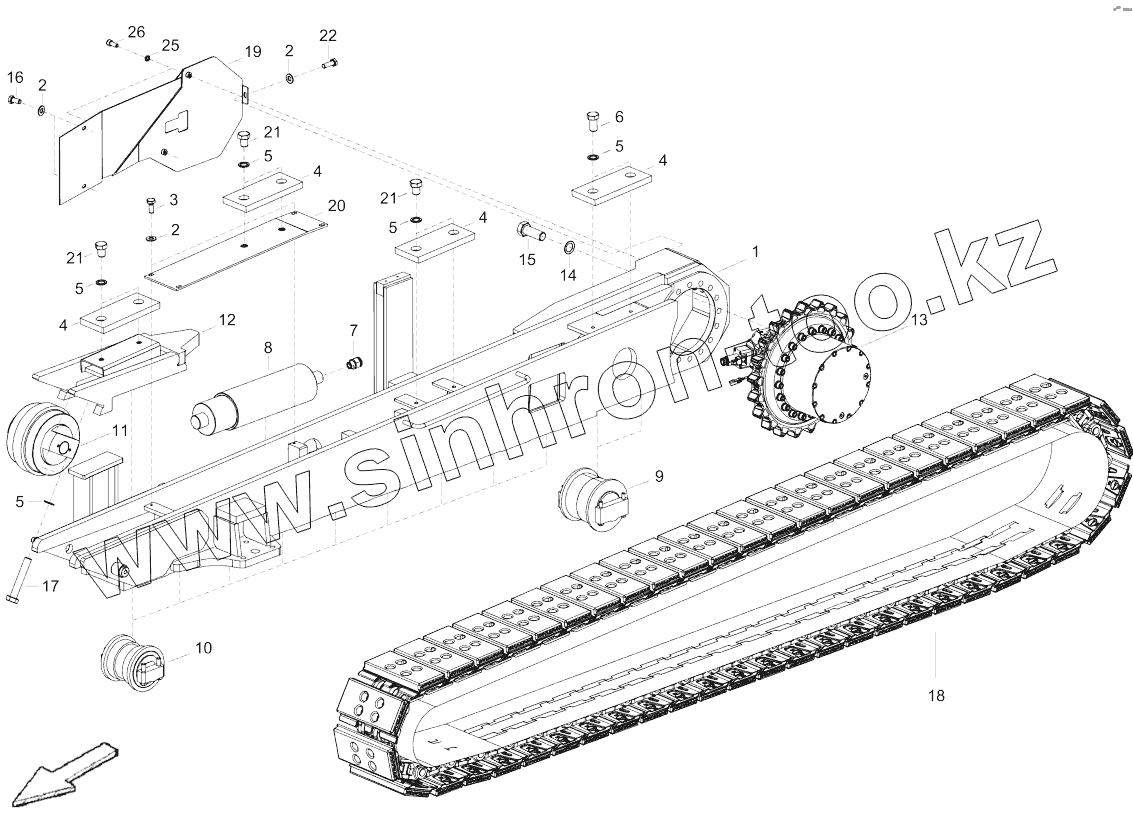 Каталог запасных частей к технике: DYNAPAC SD2550CS. Crawler, long, r.h.cpl.