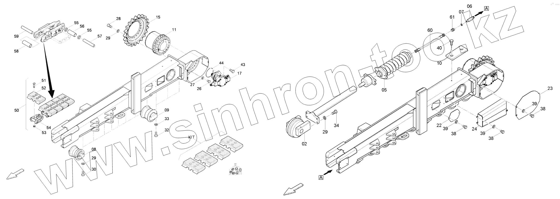 Каталог запасных частей к технике: DYNAPAC SD2550CS. Track group, long, l.h.