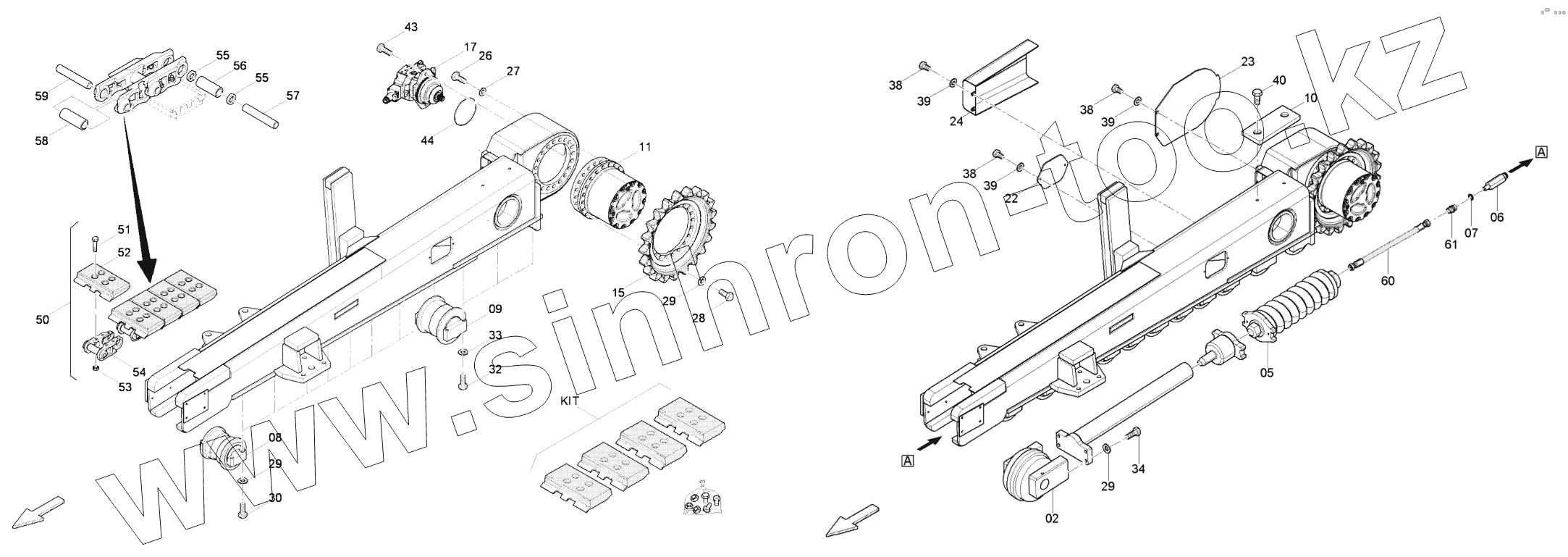 Каталог запасных частей к технике: DYNAPAC SD2550CS. Track group, long, r.h.