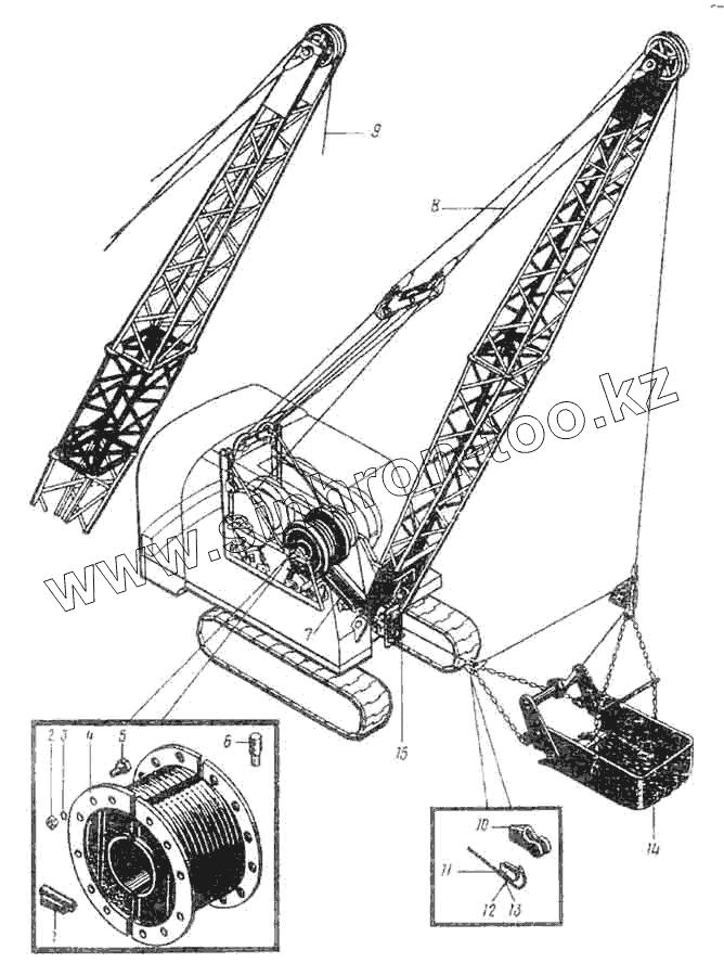 Каталог запасных частей к технике: ЭКСКО ЭО-5111Б. Рабочее оборудование драглайн вместимостью 1м3