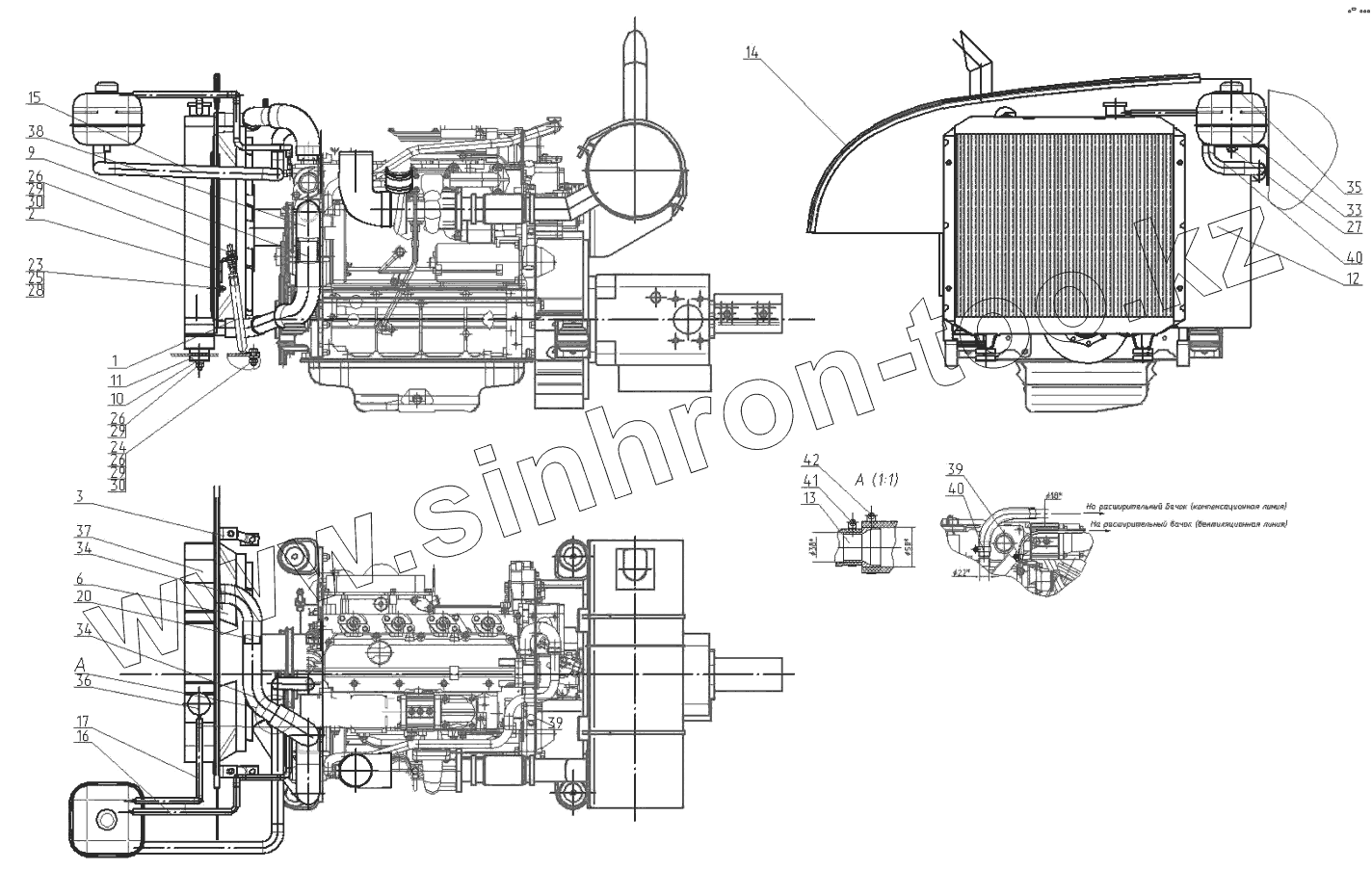 Каталог запасных частей к технике: ЭКСМАШ E130W. Установка радиатора 130-00-28.06.000