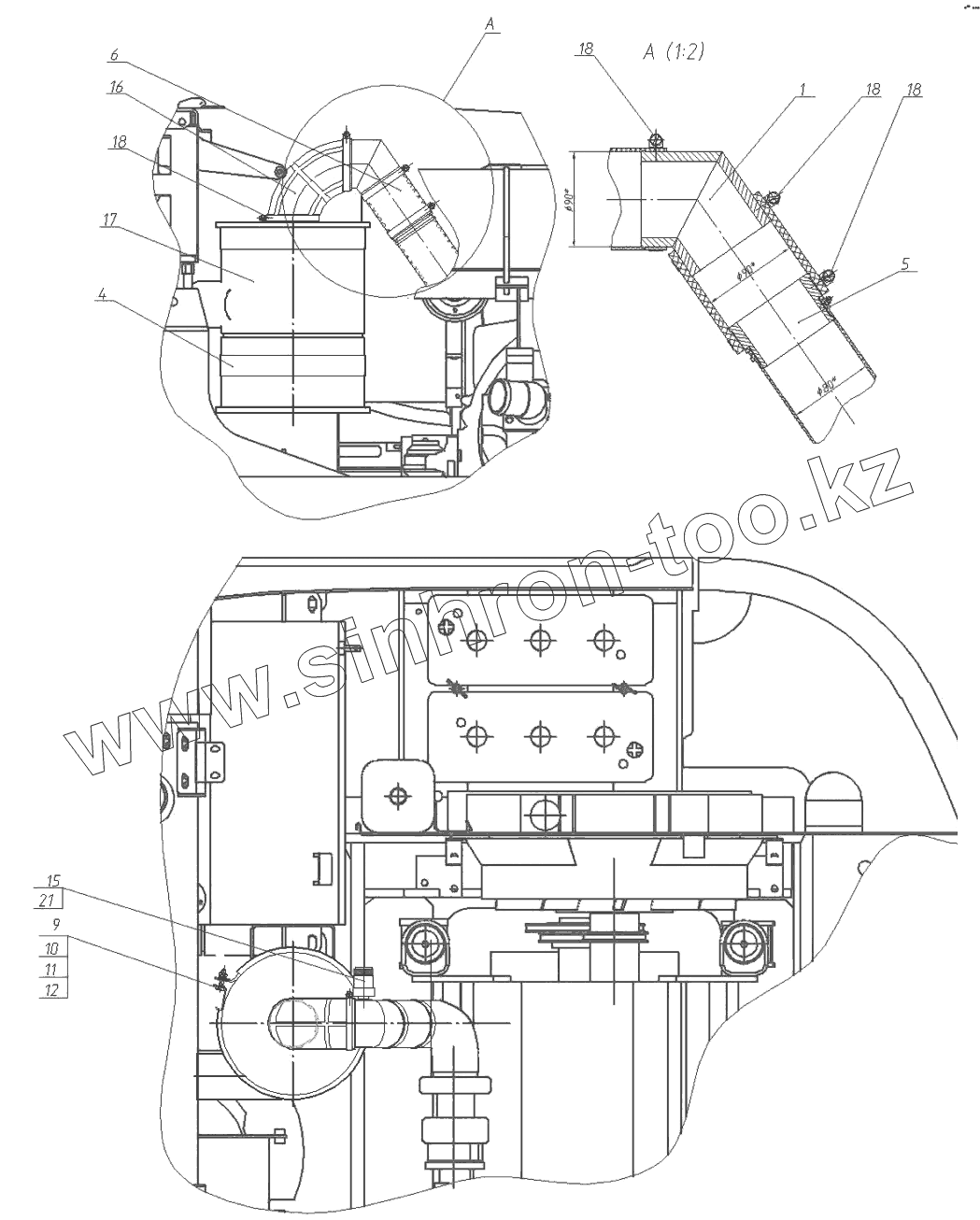 Каталог запасных частей к технике: ЭКСМАШ E130W. Установка воздухоочистителя 130-00-28.04.000