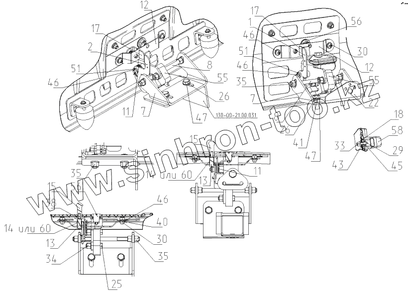 Каталог запасных частей к технике: ЭКСМАШ E130W. Установка замков 130-01-22.00.200