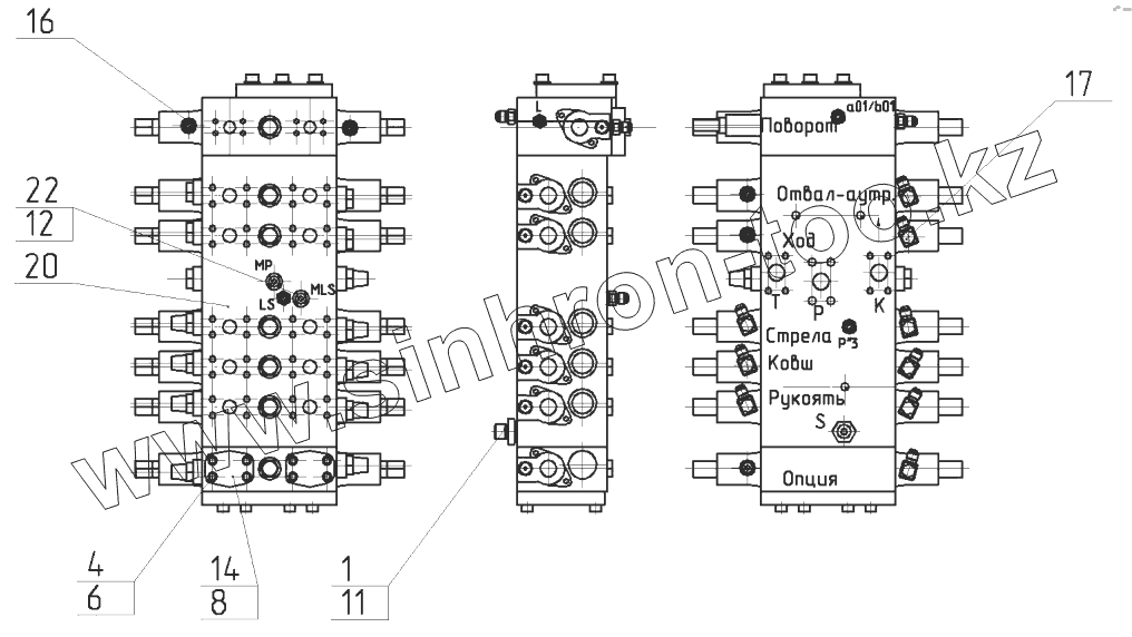Каталог запасных частей к технике: ЭКСМАШ E160W. Гидрораспределитель 160-22-41.20.000