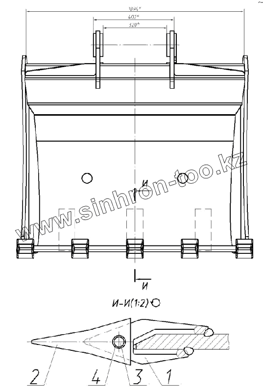 Каталог запасных частей к технике: ЭКСМАШ E160W. Ковш 160-00-80.80.100