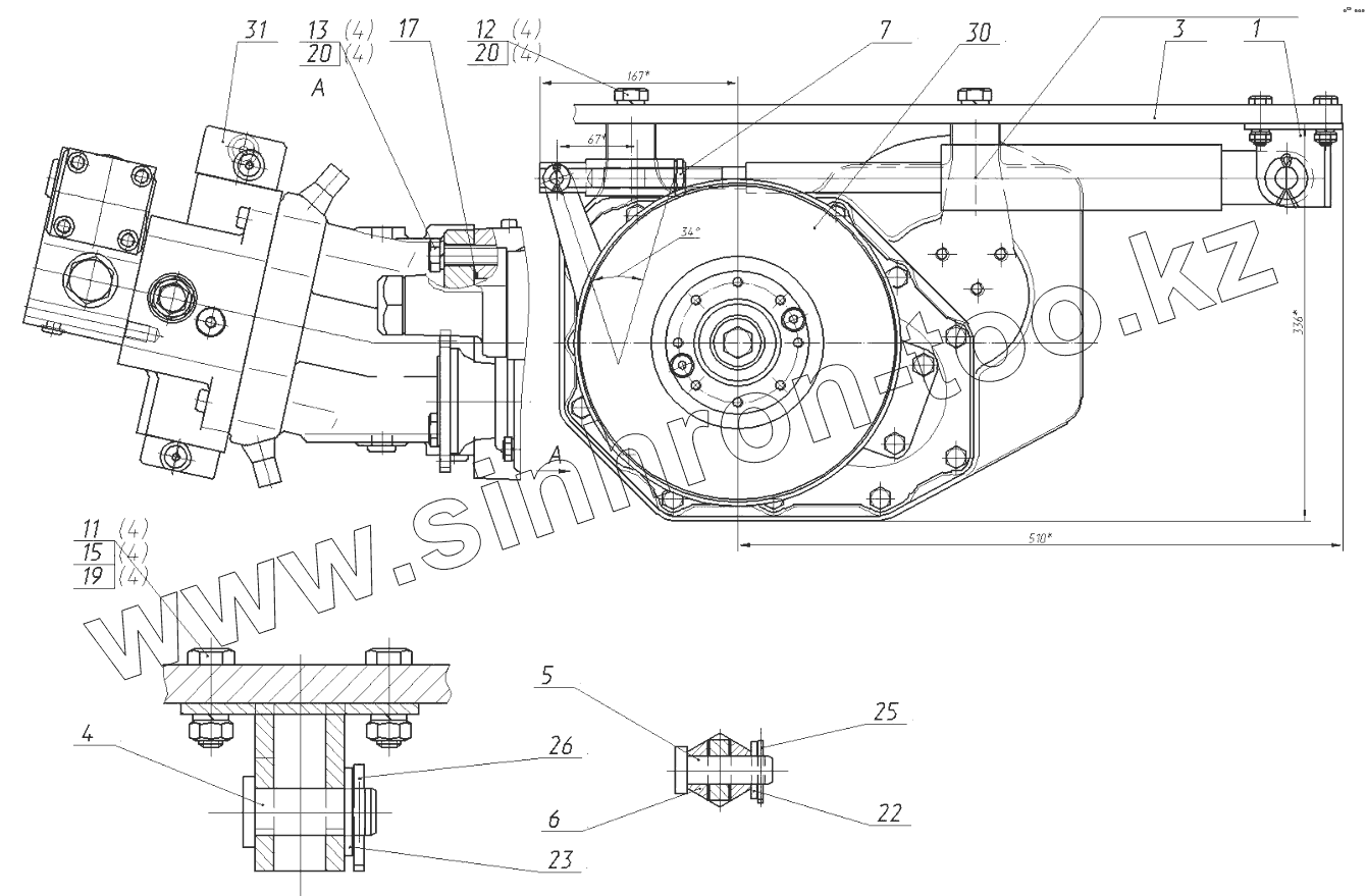 Гидроуправление на поворотной платформе 160-22-42.20.000